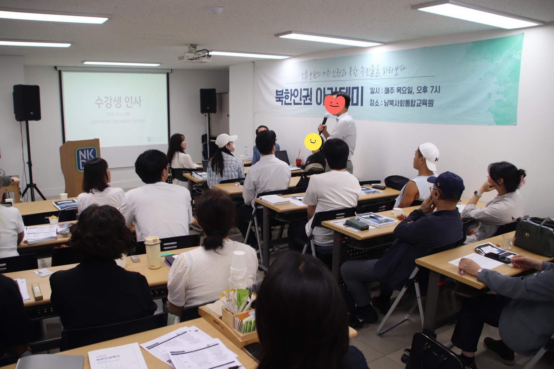 강의 후에는 수강생 간 자기소개 시간이 이어졌는데요. 북한과의 역사에 대해 관심을 가지는 중학생들에게 더욱 심도있는 이야기를 해줄 수 있도록 찾아오신 중학교 역사 선생님, '꽃제비'를 주제로 한 시를 낭송하며 모든 수강생들을 먹먹하게 만들었던 북한 출신 수강생 등 다양한 배경과 경험을 가진 수강생들이 각자의 관심과 경험을 나누며 교류할 수 있는 자리가 되었습니다.